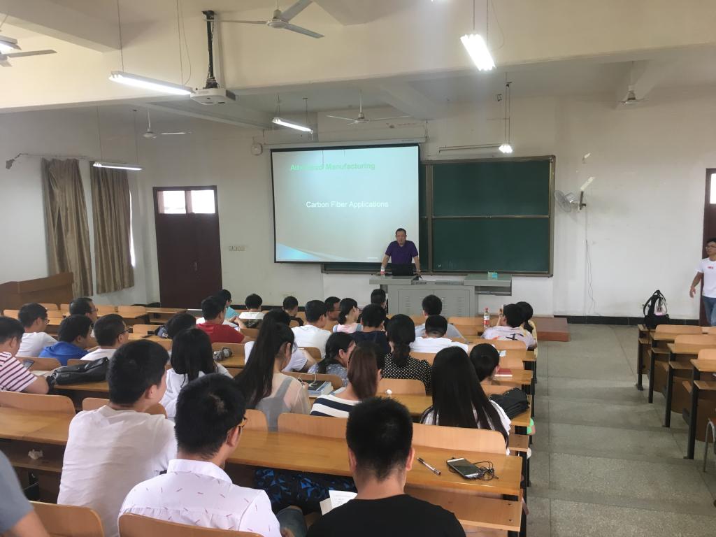 最后王教授还谈及了国际上碳纤维材料的智能化生产和应用前景,妙语连珠引得现场气氛热烈。同学们一致感叹“王教授上知天文下知地理,听了这场妙趣横生的讲座真是让我受益匪浅”!