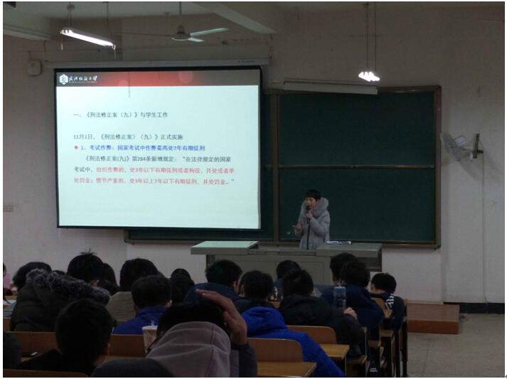 宋老师组织17级全体员工认真学习了《澳门十大老牌信誉平台排行榜员工手册(2018年版)》和2015年11月1日正式实施的《刑法修正案(九)》中关于考试作弊入刑的有关条款,详细解读了相关规定,让大家认识到应该养成良好的行为习惯,注意宿舍安全文明,同学交往文明有礼,考试中重视考风考纪,坚决杜绝各类违纪行为的发生。