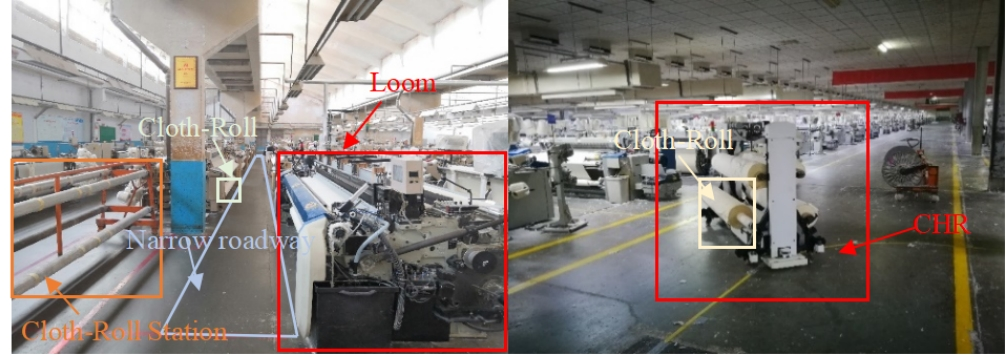 随着工程技术的发展,轮式移动机器人(WMR)和自动导引运输车(AGV)在智能物流中的应用越来越广泛。然而,织造车间中织机之间的巷道宽度、布辊长度、运输效率等应用场景特征严重限制了传统WMR或AGV的适应性。因此,我们开发了一种布卷搬运机器人(CHR),该机器人将AGV的安全性和效率特性与WMR的智能化特性相结合,使织造车间的物流智能化成为可能。这种新型机器人采用超长机身,以适应长布辊和狭窄巷道的场景特征。然而,超长机体的设计对复杂轨迹跟踪性能和机器人安全性提出了更高的要求。复杂的织造车间环境也对高精度控制提出了新的挑战。