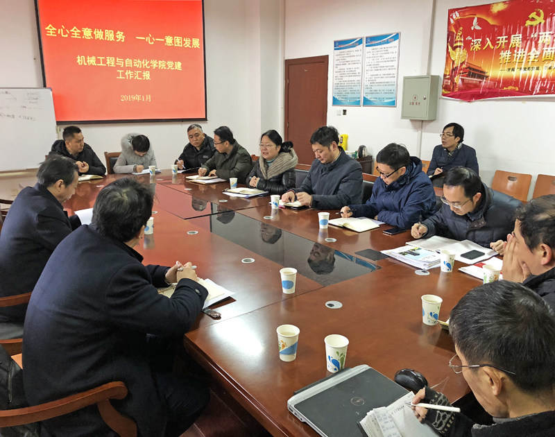 澳门十大老牌信誉平台排行榜党委书记肖信华首先汇报了2018年学院整体工作完成情况、取得的成绩以及公司党组织建设、政治理论学习、党风廉政建设等方面工作开展的具体情况。经理余联庆向韦书记一行汇报了学院2019年的工作思路,并详细介绍了学院人才引进、团队建设、研究生招生等方面的基本情况。吴世林副经理介绍了学院教学和实训中心工作开展的情况。吴晓副经理介绍了公司科研、资产与实验室建设、消防工作开展情况。马双宝副经理介绍了研究生管理、学科竞赛获奖情况。党委副书记刘韦详细汇报了员工工作、员工党支部和党员发展、人才招聘、宣传、校庆等方面的工作情况。其他与会人员分别就教学科研相互促进、党支部建设等工作向韦书记做了汇报。