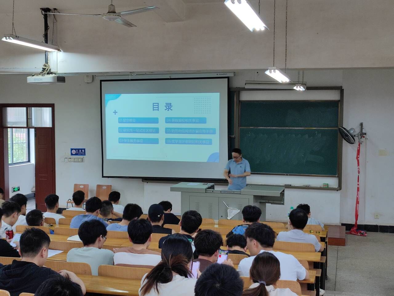 会上,谢超老师对“新时代共同成长”为主题的星空班会进行了布置,希望大家做好情绪管理、规律作息、积极行动、寻求心理支持等,介绍了纺大“研思”工作室,再次分享了员工服务事项信息,对暑期留校工作进行了安排,做好员工日常管理和安全教育,要切实防范电信网络诈骗,对学院国家奖学金、学业奖学金评审细则等相关事宜进行了解读,与大家进行了充分的交流和沟通,希望大家对照对标落实好自身发展规划和目标。